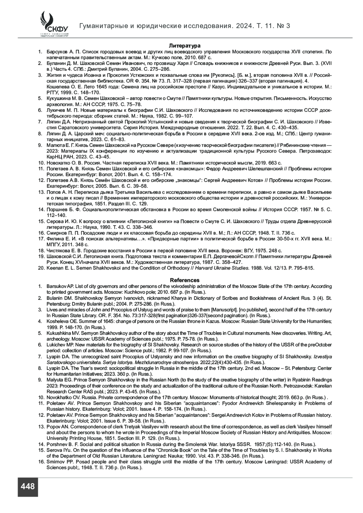 20. Keenan E. L. Semen Shakhovskoi and the Condition of Orthodoxy // Harvard Ukraine Studies. 1988. Vol. 12/13. P. 795-815.