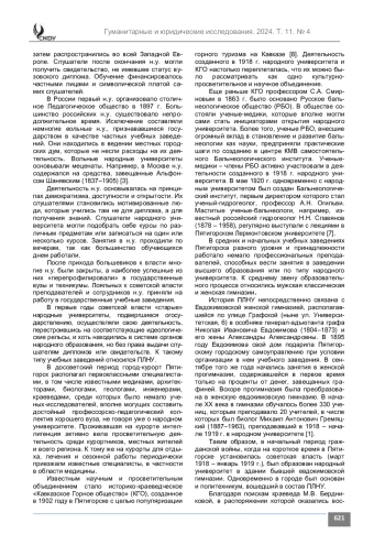 Ключевые фразы: СЕВЕРНЫЙ КАВКАЗ, кавказские минеральные воды, терская губерния, народный университет, факультеты, учебный процесс