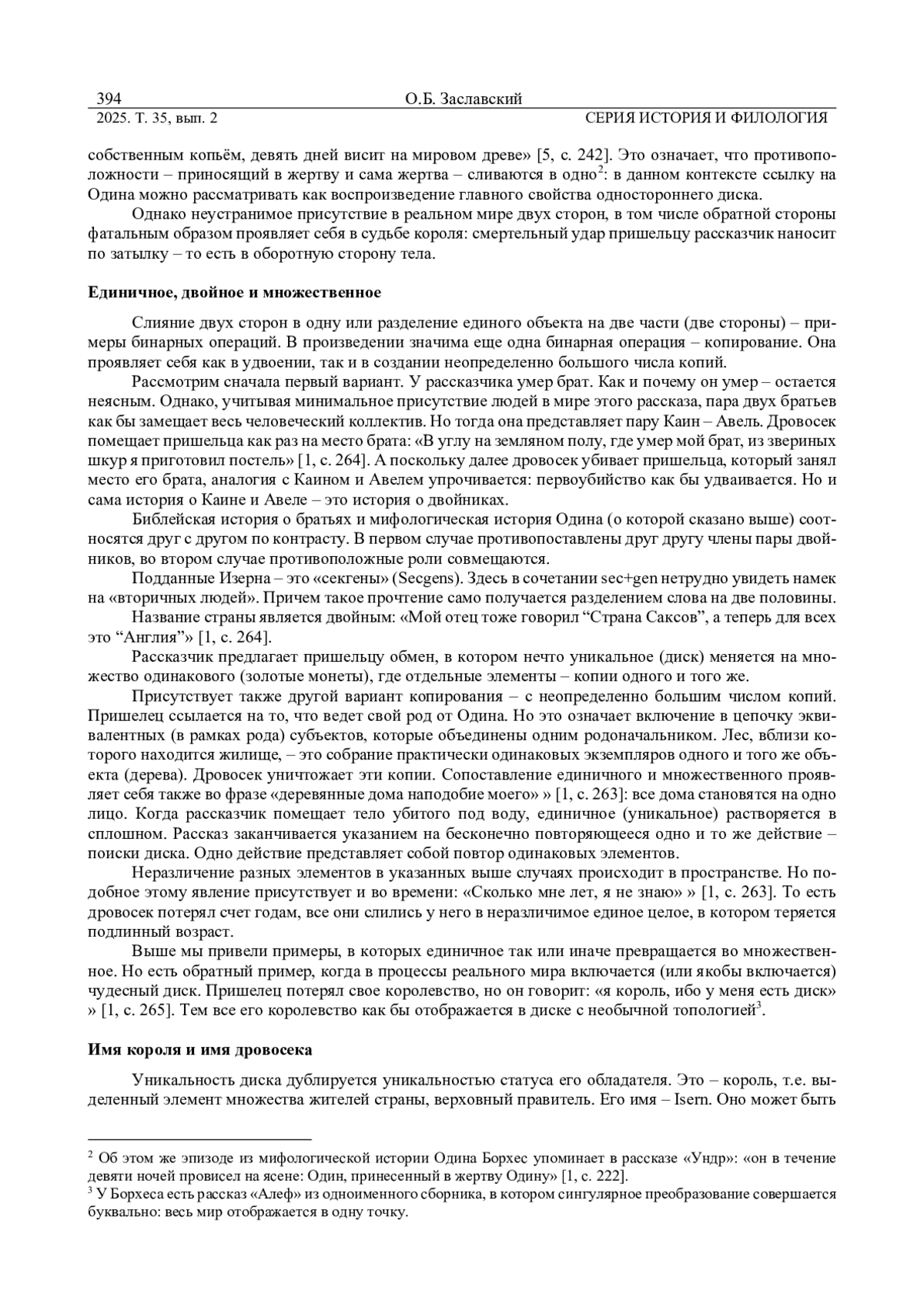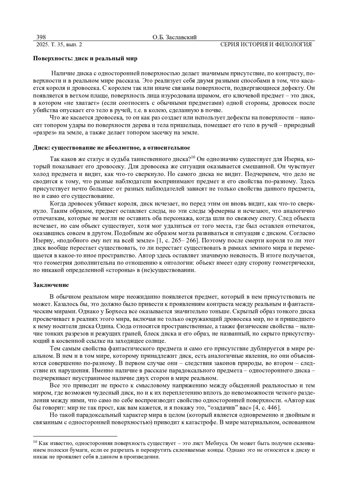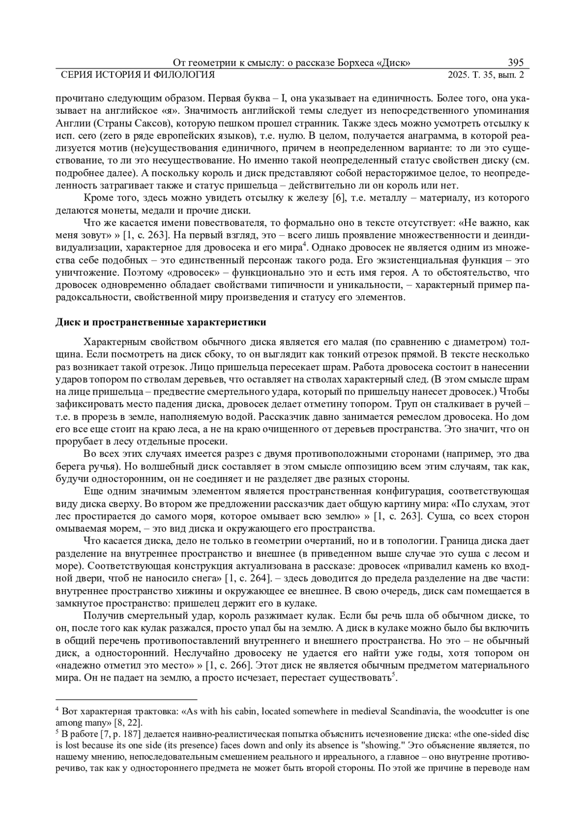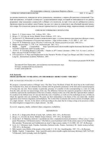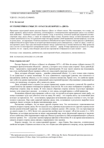 ЗАСЛАВСКИЙ О. Б. ОТ ГЕОМЕТРИИ К СМЫСЛУ: О РАССКАЗЕ БОРХЕСА «ДИСК» // ВЕСТНИК УДМУРТСКОГО УНИВЕРСИТЕТА. СЕРИЯ: ИСТОРИЯ И ФИЛОЛОГИЯ. 2025. Т. 35 № 2