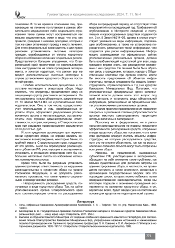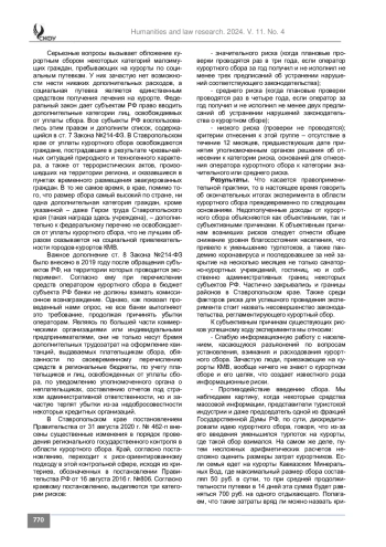 Введение. Курортный сбор на территории курортов КМВ проводится с 2018 года по настоящее время. В его основе лежит ФЗ от 29 июля 2017 года № 204-ФЗ, именуемый в новой редакции как ФЗ «О проведении эксперимента по развитию курортной инфраструктуры». Институт не является новым; он имел место в разных формах как в дореволюционном, так и в советском законодательстве. Вместе с тем, лучшие наработки предшествующих периодов не были учтены в данном эксперименте на современном этапе, что провоцирует целый ряд социальных, финансово-экономических, коммерческих, экологических и иных рисков для успешного функционирования института курортного сбора и курортов КМВ в целомкак важнейшей бальнеологической лечебно-реабилитационной базы федерального значения.