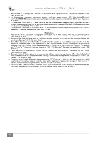 2. Белозерова Е. В. Государственно-правовая политика Российской империи в отношении курортов Кавказских Минеральных Вод: дисс. … канд. юрид. наук. Ставрополь, 2011. 252 с.