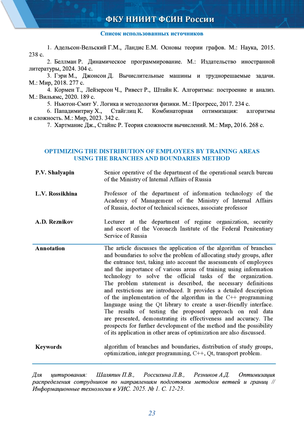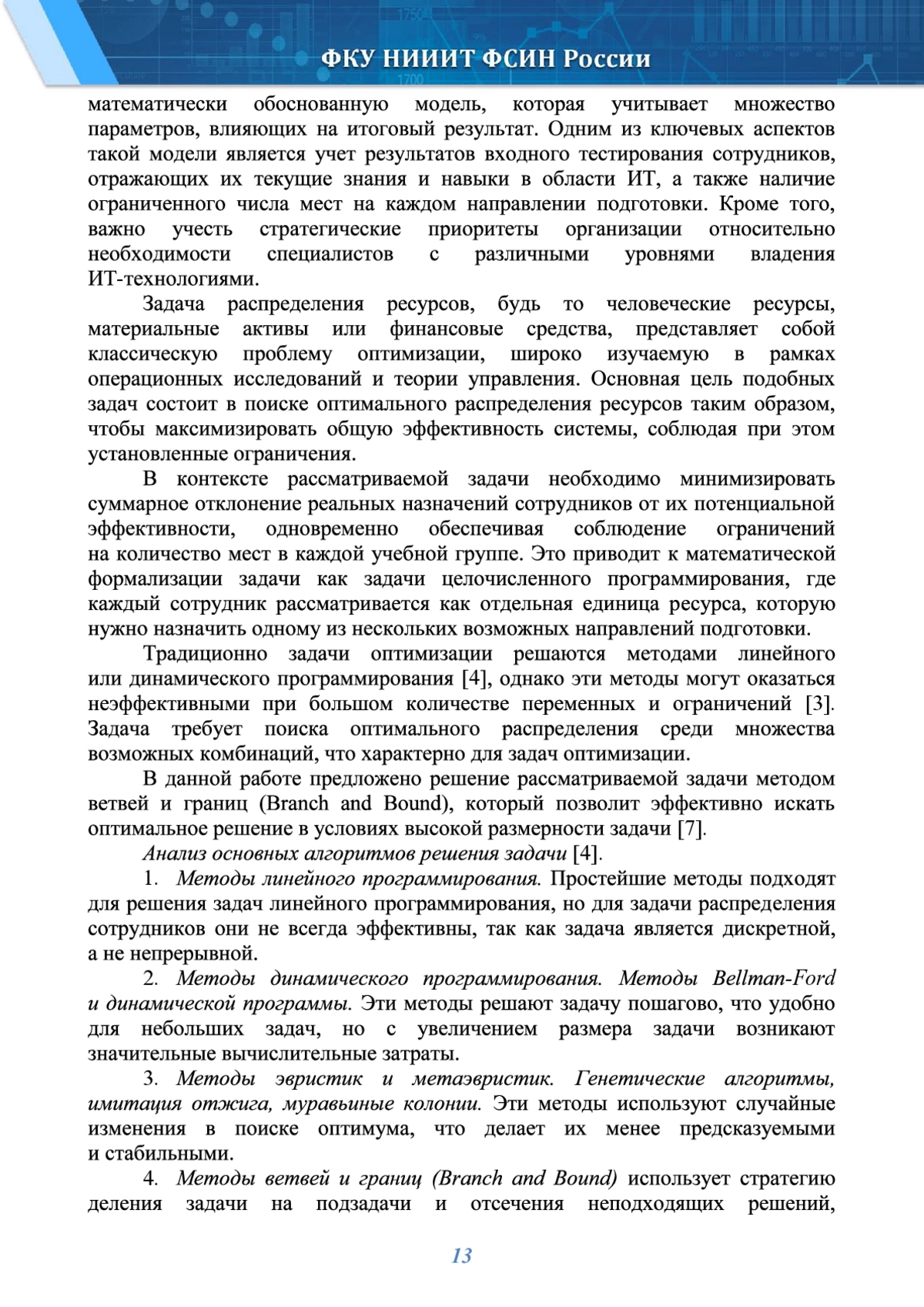 Статья: ОПТИМИЗАЦИЯ РАСПРЕДЕЛЕНИЯ СОТРУДНИКОВ ПО НАПРАВЛЕНИЯМ ПОДГОТОВКИ МЕТОДОМ ВЕТВЕЙ И ГРАНИЦ (2025)