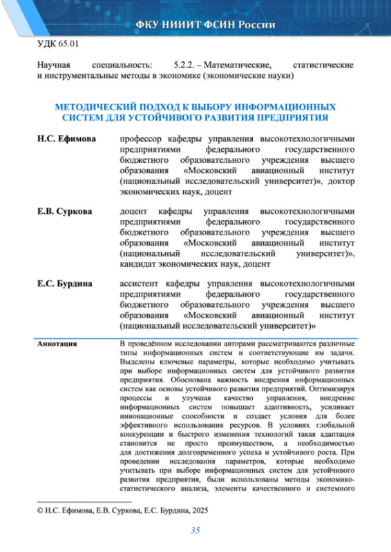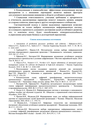 3. Ефимова Н.С., Нестеров О.В. Формирование механизмов устойчивого развития промышленного производства в условиях цифровизации // Вестник евразийской науки. 2024. Том 16. № 4. С. 61. EDN: COJXFG