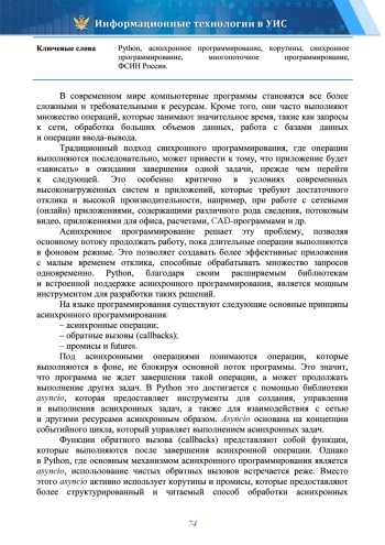 Ключевые фразы: Python, асинхронное программирование, корутины, синхронное программирование, многопоточное программирование, фсин россии