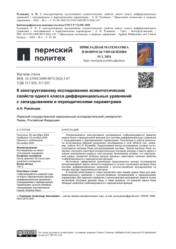 5. Rumyantsev, A. N. On exact construction of the Cauchy function for a differential equation with linear delay / A. N.Rumyantsev // Functional Differential Equations. - 2021. - Vol. 28, no 1-2. - P. 11-17.