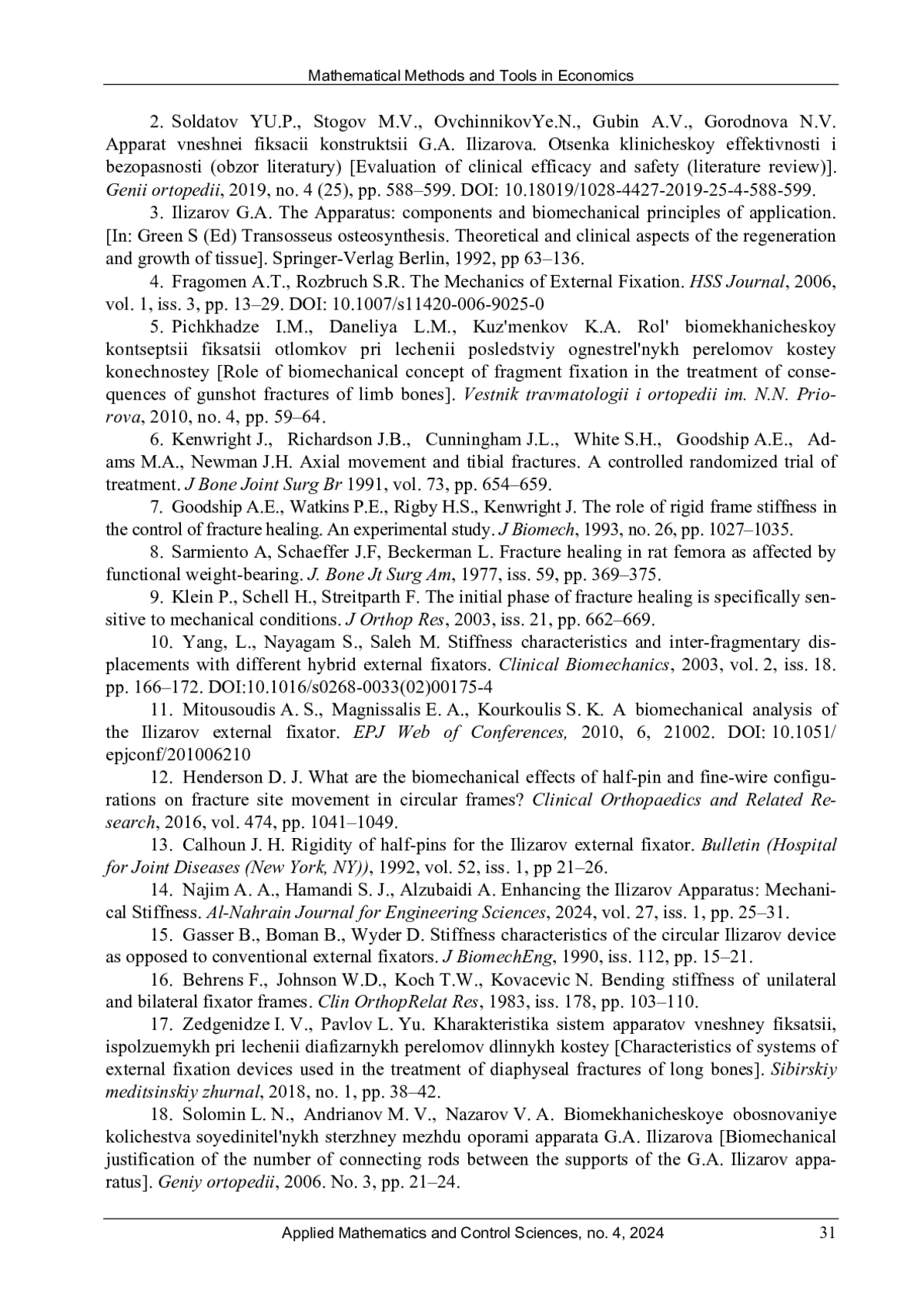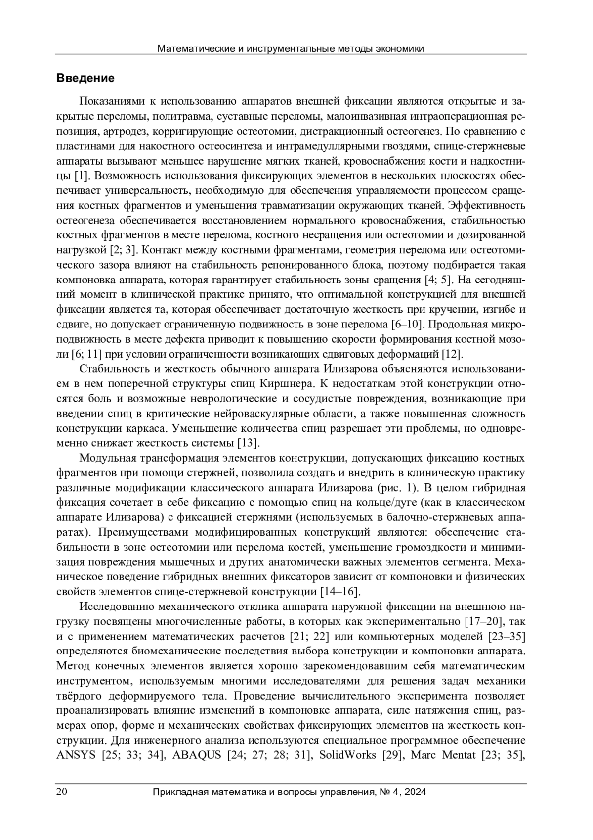 Статья: КОМПЬЮТЕРНОЕ МОДЕЛИРОВАНИЕ МЕХАНИЧЕСКОГО ПОВЕДЕНИЯ АППАРАТА ИЛИЗАРОВА МОДИФИКАЦИИ БАГИРОВА (2024)
