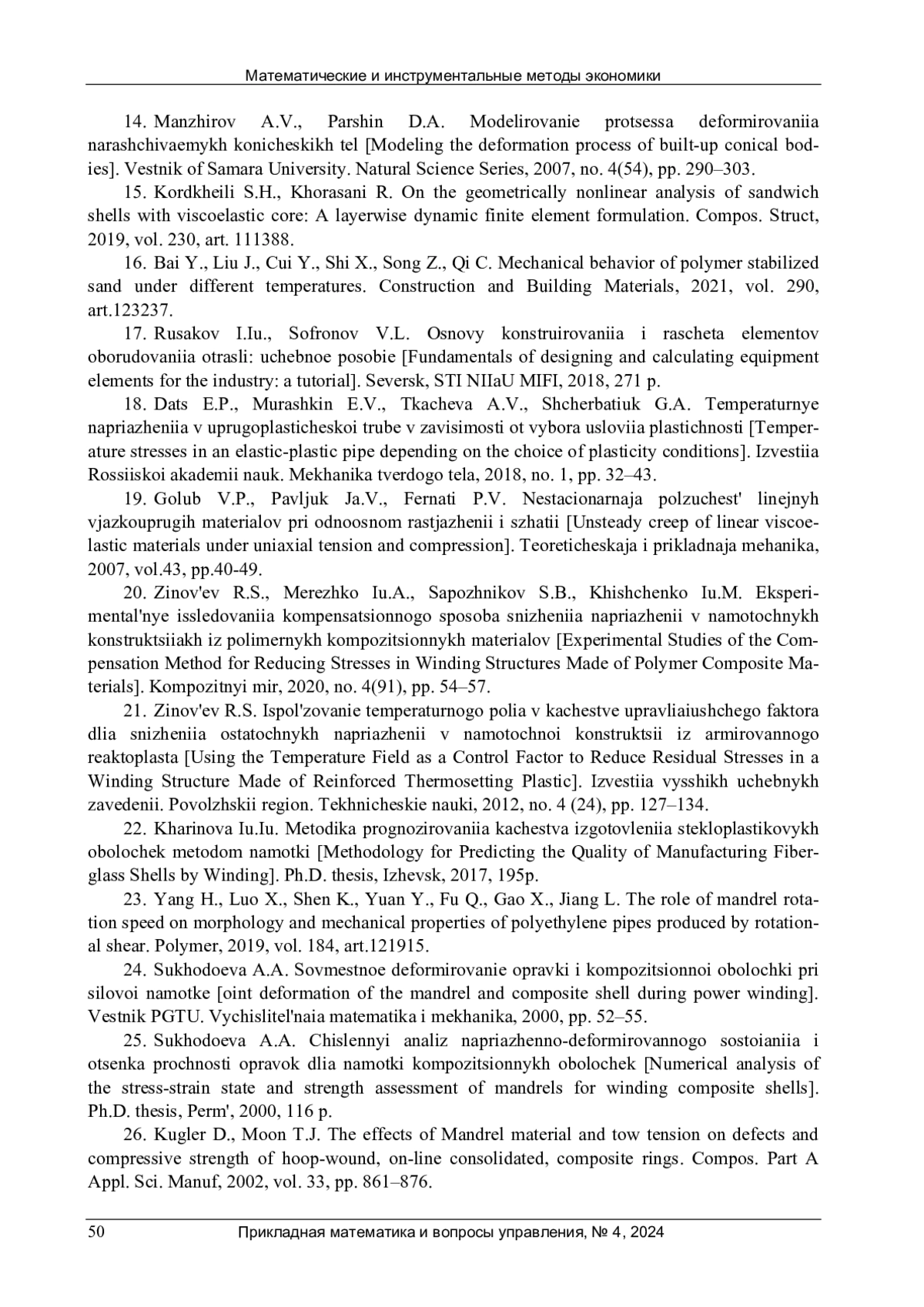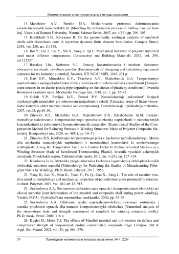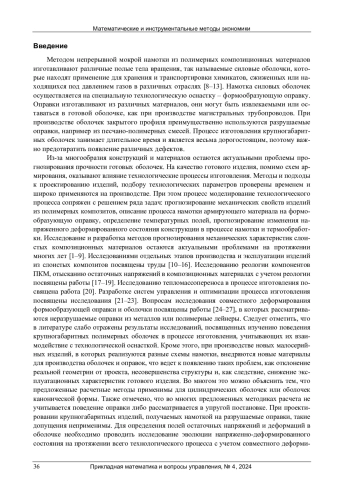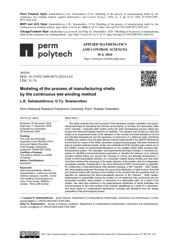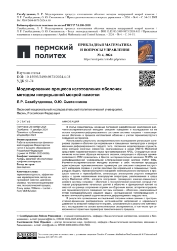 Статья: МОДЕЛИРОВАНИЕ ПРОЦЕССА ИЗГОТОВЛЕНИЯ ОБОЛОЧЕК МЕТОДОМ НЕПРЕРЫВНОЙ МОКРОЙ НАМОТКИ (2024)