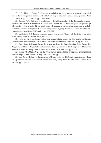 Ключевые фразы: термовязкоупругость, эффективные характеристики, метод непрерывной намотки, давление, оправка, численное моделирование, технологический процесс, prony series, williams - landel - ferry shift function