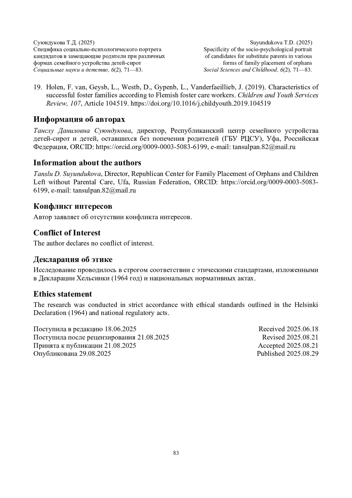 3. Козлова, Т.З. (2012). Мотивация приема детей-сирот в замещающую (опекунскую) семью. Социологический журнал, 2, 115-126. URL: item.asp?id=17874591 (дата обращения: 08.08.2025).