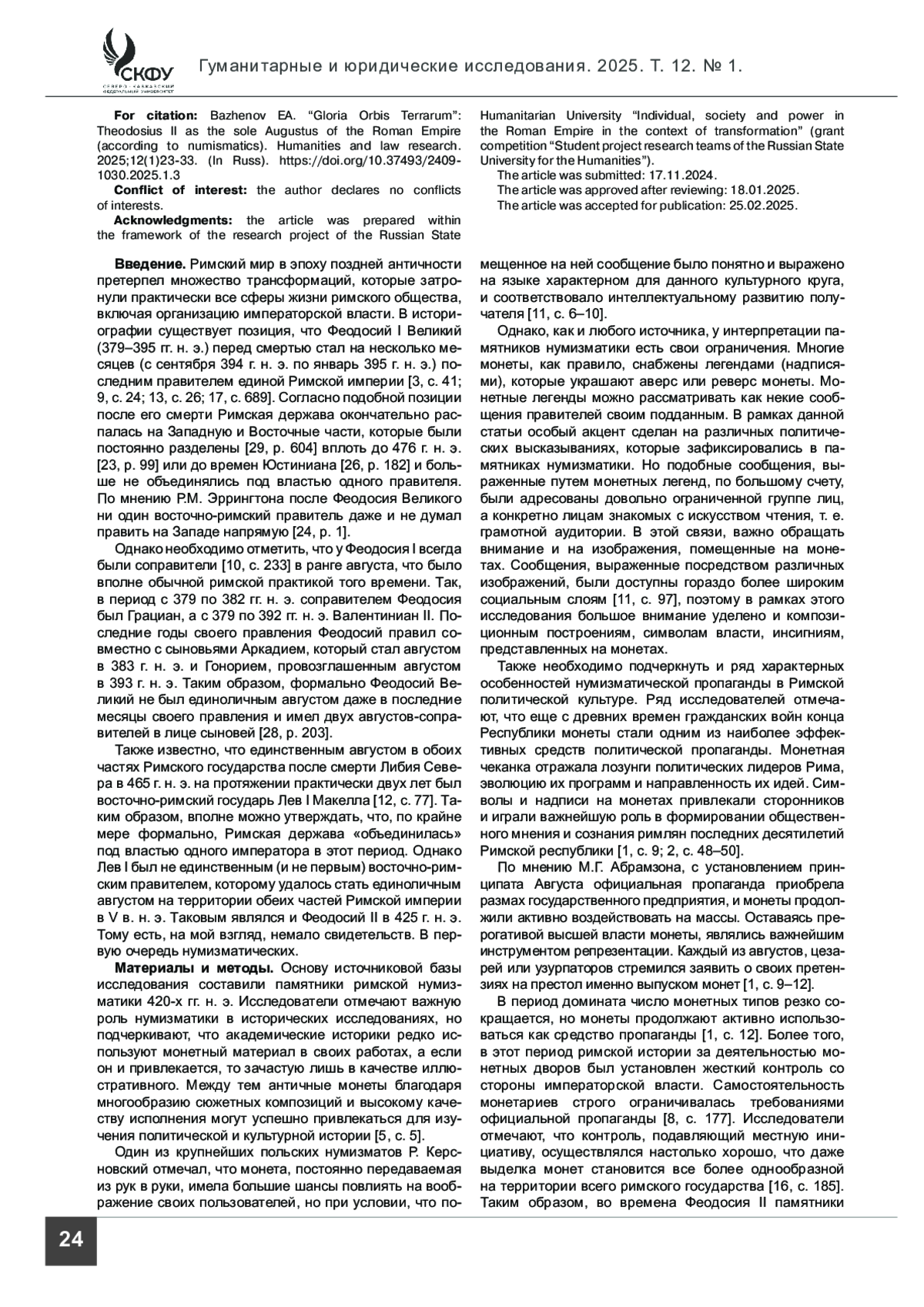8. Данилов Е. С. Сумерки римских богов: лозунги безопасности на монетной чеканке IV века // Античные культы в пределах полисов и империй. Cборник статей по итогам Второго Всероссийского междисциплинарного научного семинара (20-21 июня 2020 г.). М.: Тропа, 2021. С. 173-183.