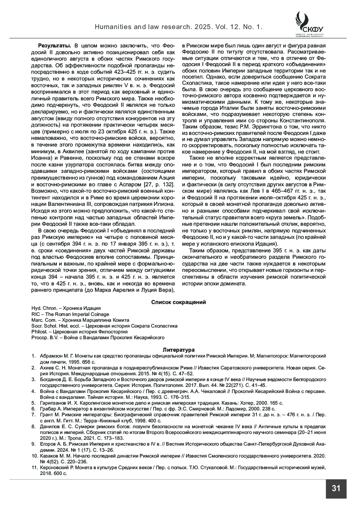 13. Кузнецов В. Н. Проблемы социально-экономического реформирования Римской империи в эпоху Феодосия Великого // Казанская наука. 2015. № 8. С. 26-29.
