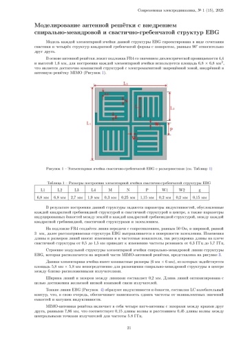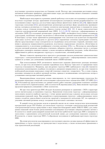 5. Elabd R. H., Al-Gburi A. J. A. Super-compact 28/38 GHz 4-port MIMO antenna using metamaterial-inspired EBG structure with SAR analysis for 5G cellular devices // Journal of In frared, Millimeter, and Terahertz Waves, 2024. Vol. 45. No. 1. pp. 35-65. DOI: 10.1007/s10762-023-00959-6 EDN: WCPKZO