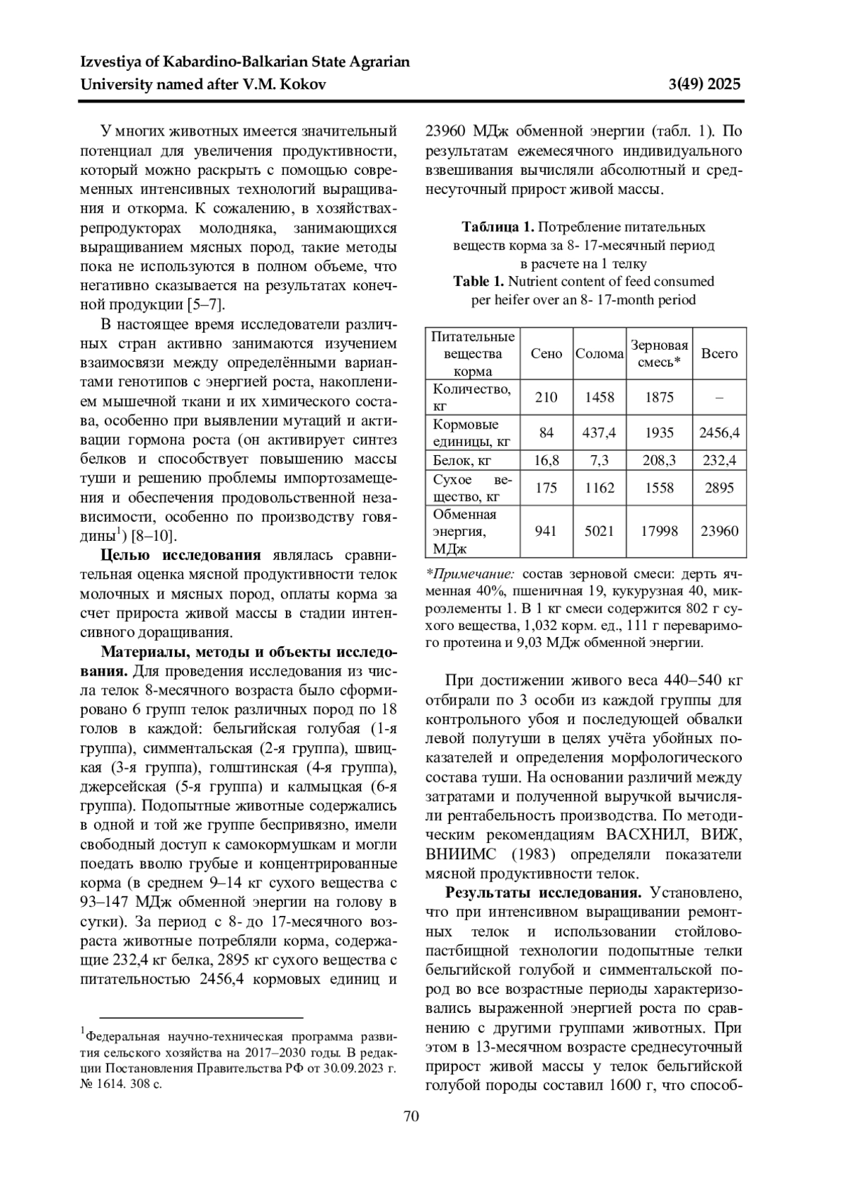 4. Биоконверсия питательных веществ корма в мясо туши бычков калмыцкой породы разных родственных групп / В. Н. Приступа, Д. С. Торосян, Р. З. Азаев, Н. Н. Тищенко // Вестник Донского государственного аграрного университета. 2024. № 1 (51). С. 72-79. EDN: RYIBUM
