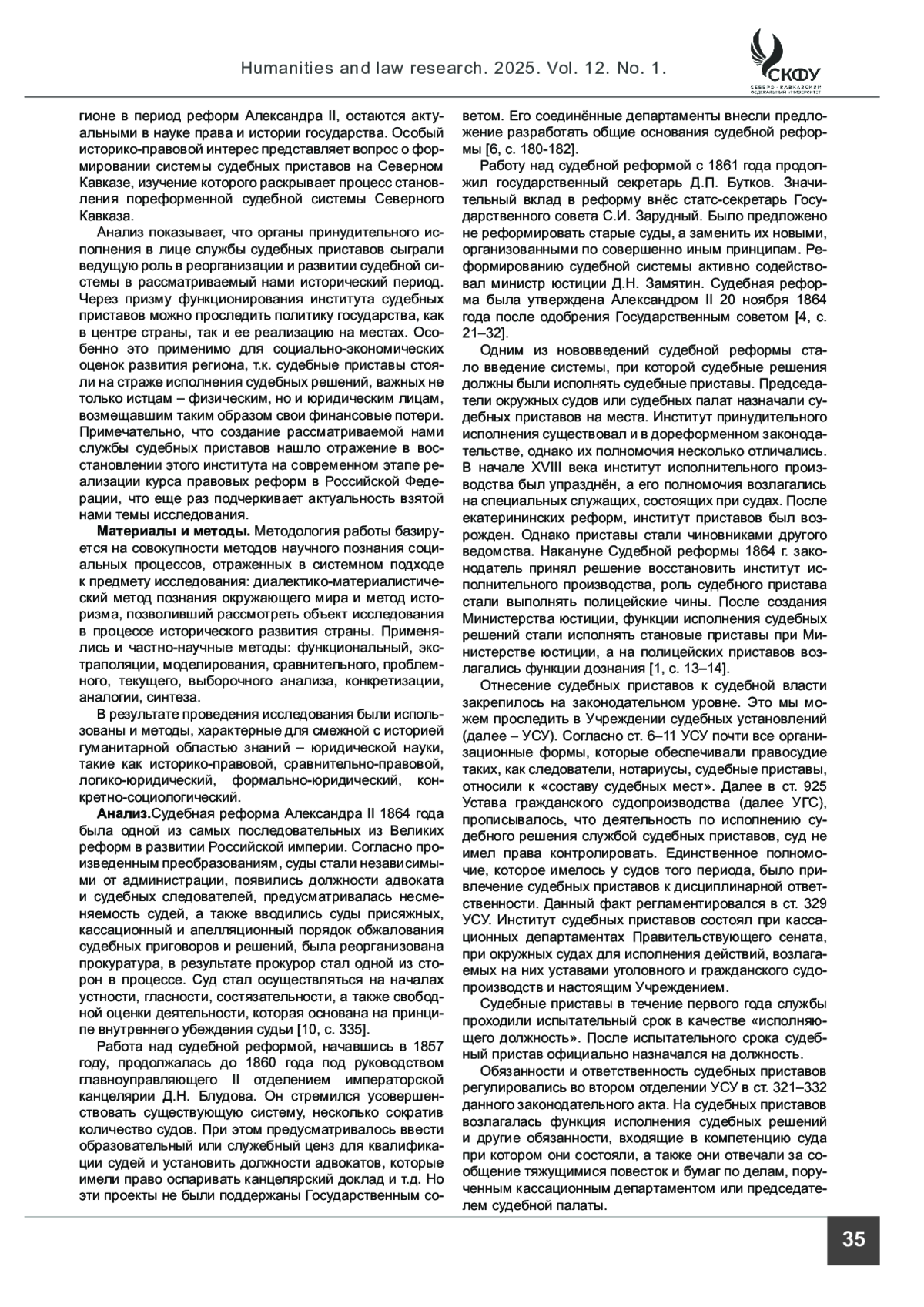 Анализ. На основе Учреждении судебных установлений в статье представлен детализированный анализ результатов структуры и работы судебных приставов.