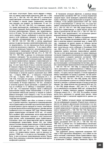 Результаты. Несмотря на политику непризнания республиканской Турцией проживающих на её территории этнических меньшинств в официальных документах, переписи 1927 и 1935 гг. позволяют оценить совокупное число этнических греков в соответствии с двумя индикаторами этничности – родным языком и религией. Однако в 13 провинциях Турции, которые охватывает наше исследование, существуют разночтения между числом православных и грекоговорящих, которые, по нашему мнению, могли быть обусловлены фальсификацией данных на местах региональными чиновниками, неточностями при обработке данных представителями центральной власти страны, а также самоидентификацией населения.
