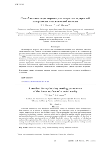 МАСЛОВ А. С., КИСЕЛЬ В.Н. СПОСОБ ОПТИМИЗАЦИИ ПАРАМЕТРОВ ПОКРЫТИЯ ВНУТРЕННЕЙ ПОВЕРХНОСТИ МЕТАЛЛИЧЕСКОЙ ПОЛОСТИ // СОВРЕМЕННАЯ ЭЛЕКТРОДИНАМИКА. 2025. № 2 (16), ТОМ 3