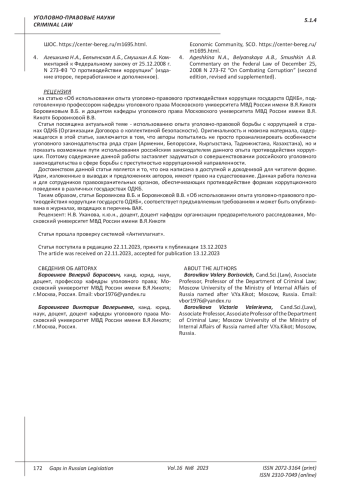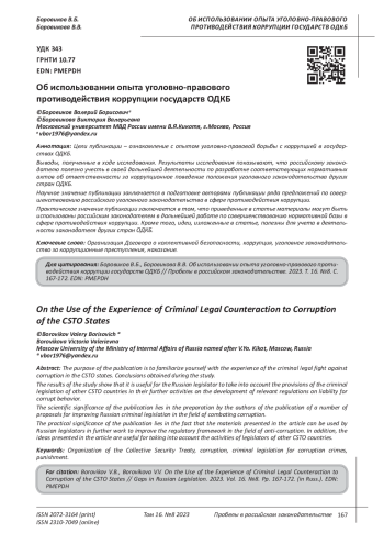 A.K. Yesayan. Corruption crimes under the legislation of the member countries of the CIS, Eurasian Economic Community, SCO. https://center-bereg.ru/m1695.html.