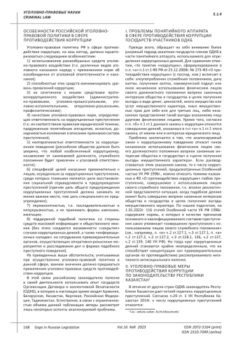 3. Семыкина О.И. Уголовно-правовые меры противодействия коррупции: сходства и различия в законодательстве стран ЕАЭС. Вестник Института Законодательства Республики Казахстан. 2016 №2(43), стр.107-114. EDN: YVKYGL