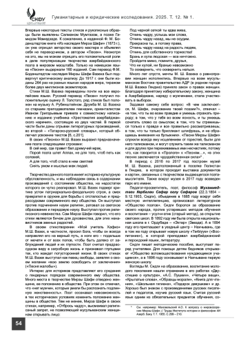 Анализ. В работе раскрыты роль, значение и вклад выдающихся деятелей литературы и просвещения в богатую азербайджанскую культуру модернизационного периода в истории азербайджанского народа ХIХ – начала ХХ вв.