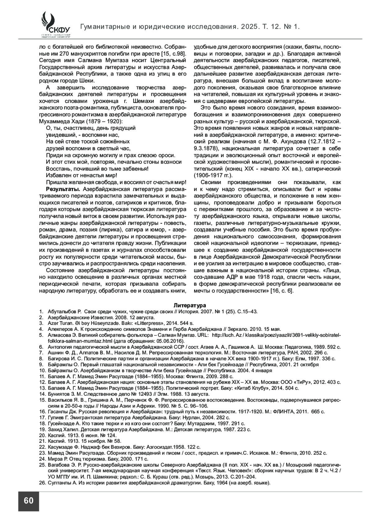 17. Гулиев Г. Эмигрантская литература Азербайджана. Баку: Нурлан, 2004. 282 с.