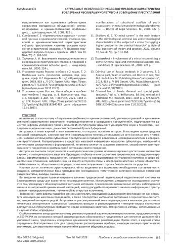 11. Ситдикова Г. З. “Криминальная карьера” - основной признак в криминологической, уголовно-правовой и криминалистической характеристиках субъекта преступления “занятие высшего положения в преступной иерархии” // Правовое государство: теория и практика. 2022. Том 18. №4 (70). С. 163-168. EDN: QWAPTO