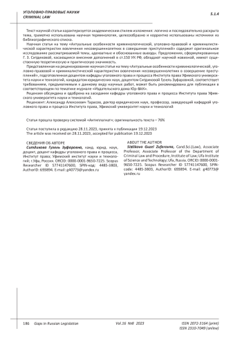 Criminal law of Russia: textbook in 2 volumes. T. 2: Special part / team of authors, ed. Doctor of Law, Prof. N.G. Kadnikova. M.: Publishing House “Jurisprudence”, 2018. 833 p. // SPS Garant. URL: https://base.garant.ru/77529154/?ysclid=lq3pjnatuw611943627 (date accessed 11/10/2023).