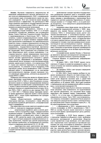 Анализ проводится на основании оценки тех изменений, которые произошли в Государственном музее этнографии во второй половине 1930-х гг.