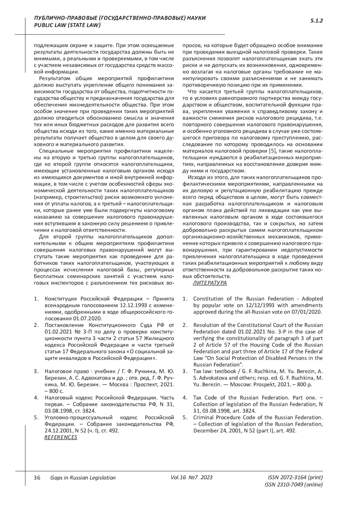 Tax law: textbook / G. F. Ruchkina, M. Yu. Berezin, A. S. Advokatova and others; resp. ed. G. F. Ruchkina, M. Yu. Berezin. - Moscow: Prospekt, 2021. - 800 p.