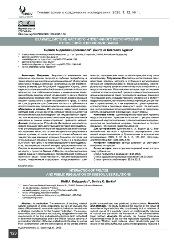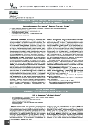 Результаты. Предметом исследования стали некоторые вопросы частного и публичного регулирования отношений недропользования. Проанализированы некоторые исторические аспекты слияния частного и публичного в недропользования. Рассмотрены взгляды ряда исследователей на вопрос о правовой природе права пользования недрами и лицензии на право пользования недрами. Замечена усилившаяся роль государственного управления в области недропользования, не только как контролирующая, регулятивная и охранительная, но и как национально ориентированная, с приоритетом к экономике замкнутого цикла, где расширение частно-правовых возможностей нацелено на предпринимателя, находящегося в юрисдикции нашей страны.