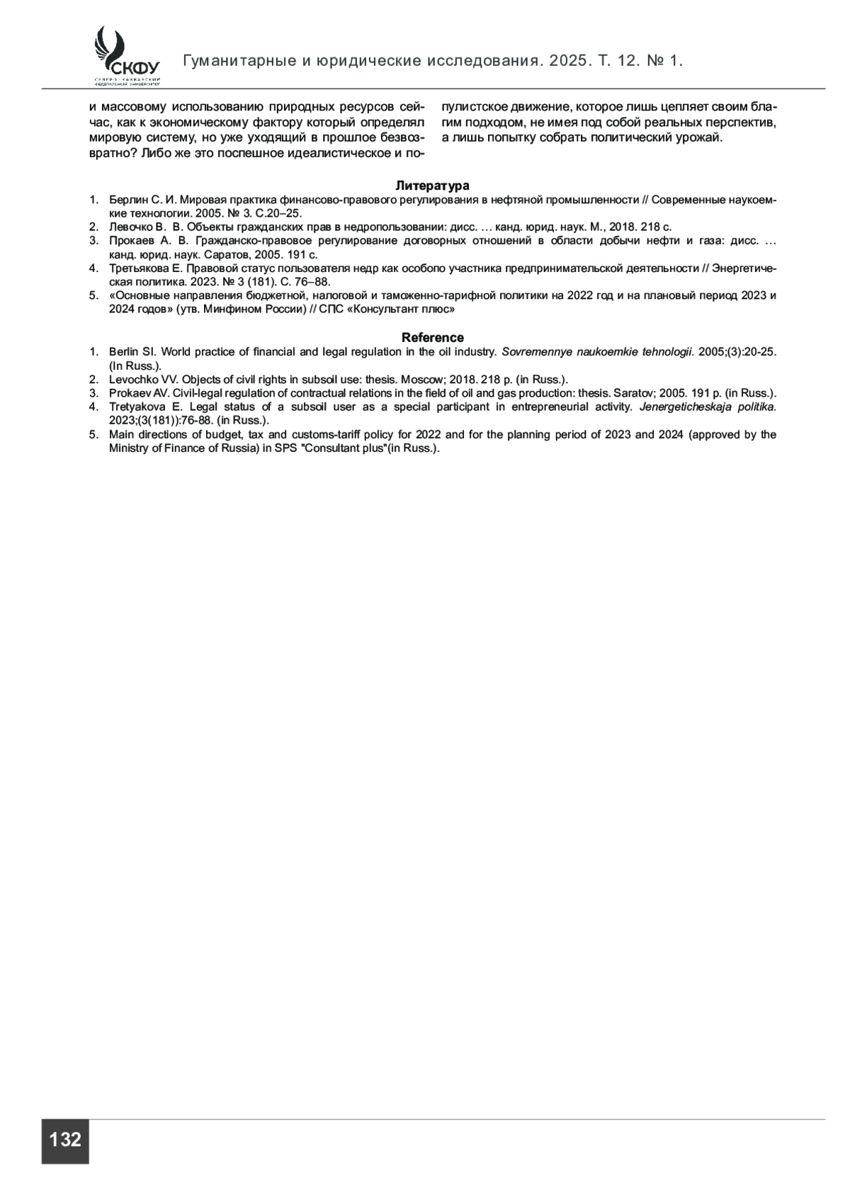 1. Берлин С. И. Мировая практика финансово-правового регулирования в нефтяной промышленности // Современные наукоемкие технологии. 2005. № 3. С.20-25.