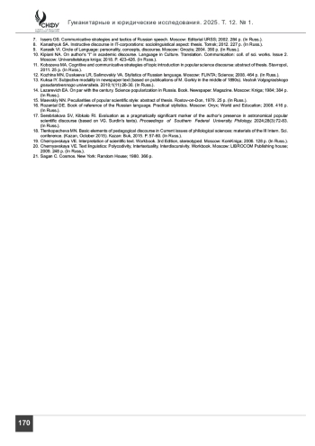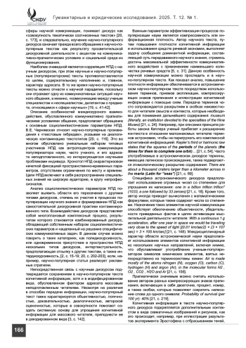 КИБКАЛО Р. И. НАУЧНО-ПОПУЛЯРНЫЙ ТЕКСТ КАК РЕЗУЛЬТАТ МЕЖДИСКУРНОГО ВЗАИМОДЕЙСТВИЯ // ГУМАНИТАРНЫЕ И ЮРИДИЧЕСКИЕ ИССЛЕДОВАНИЯ. 2025. ТОМ 12, № 1