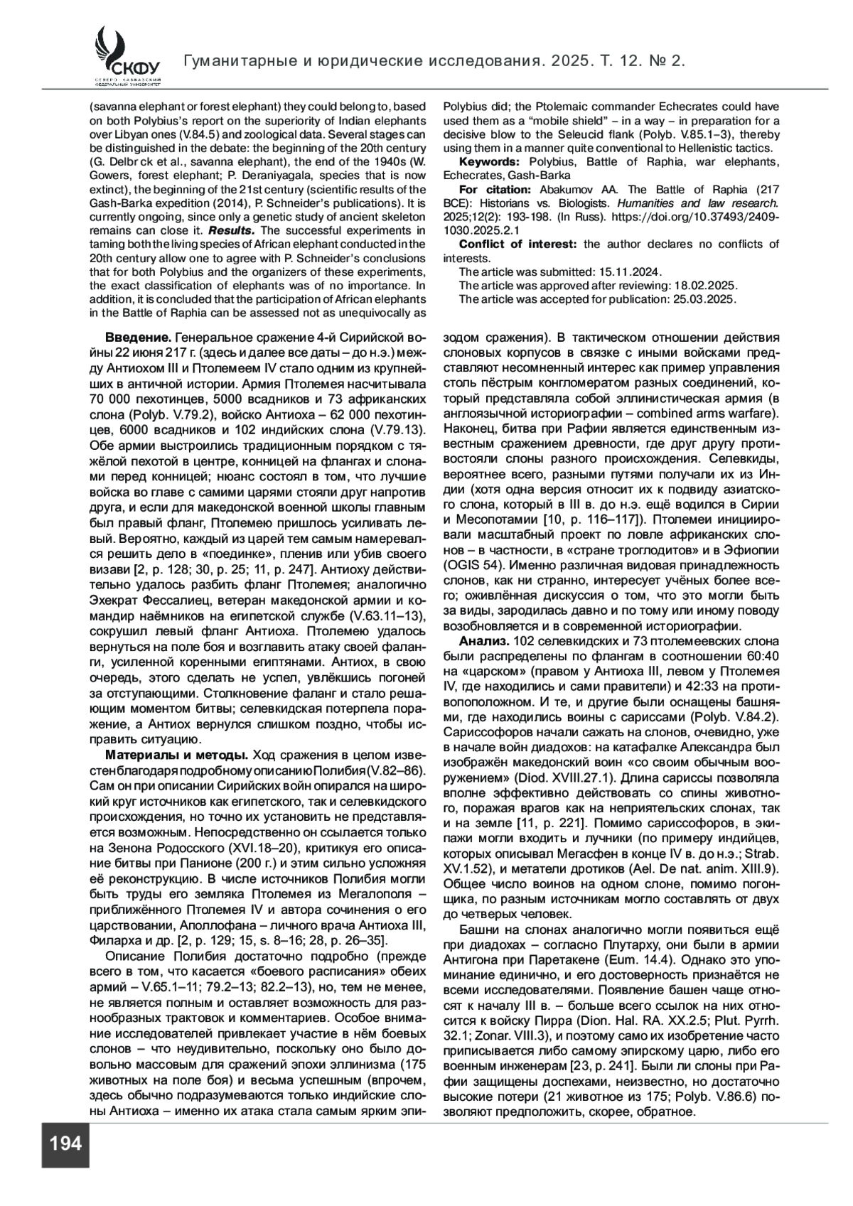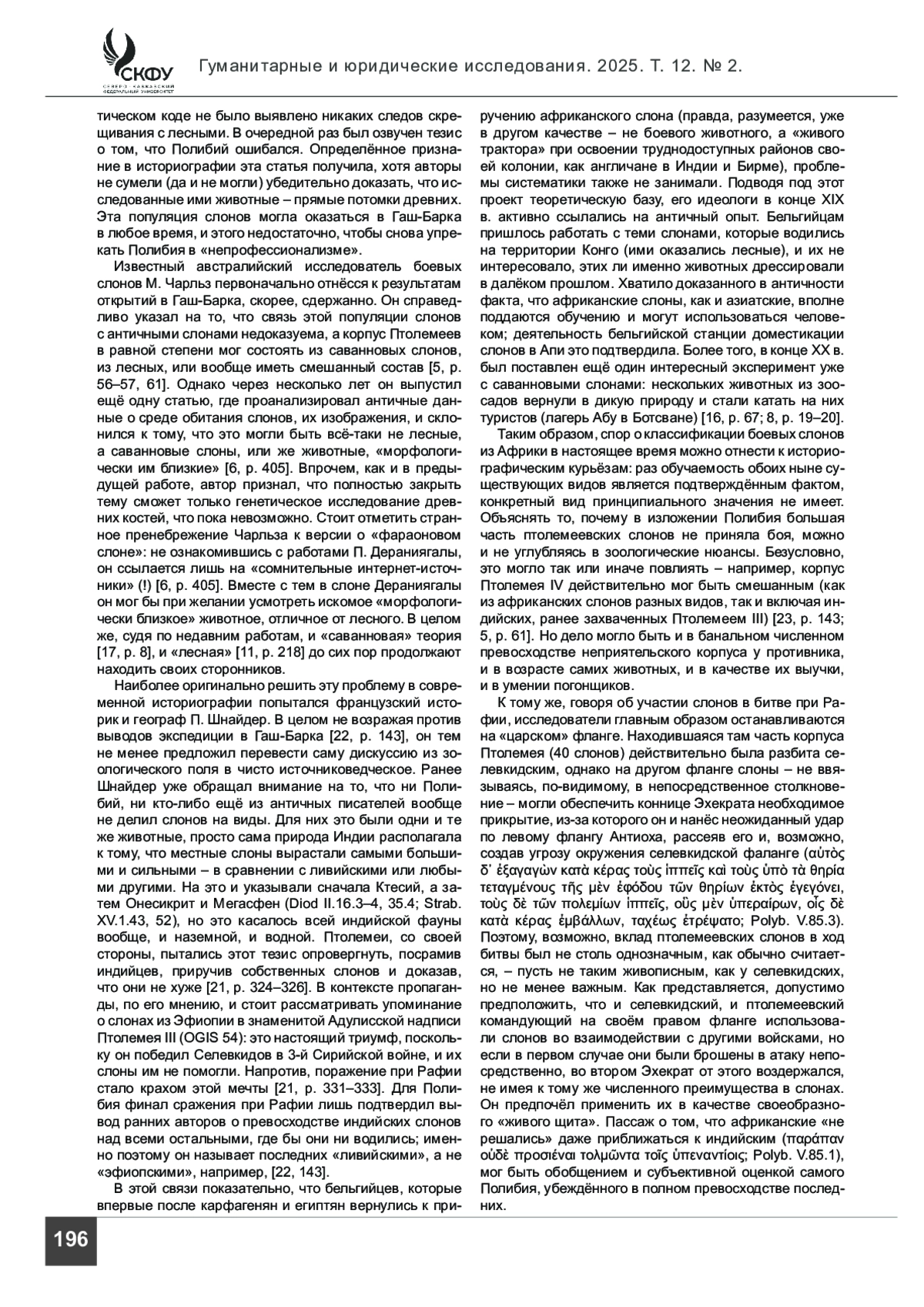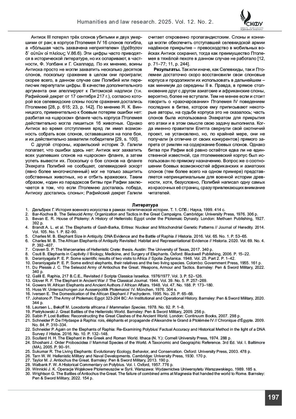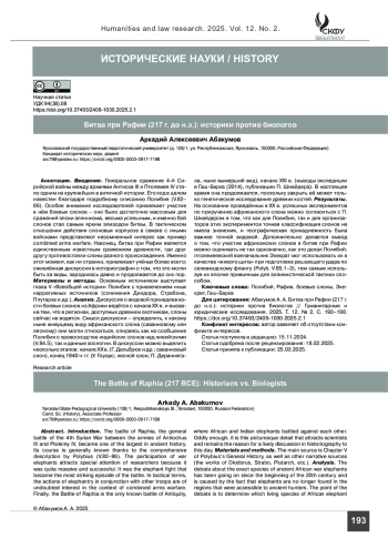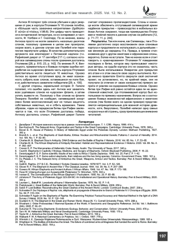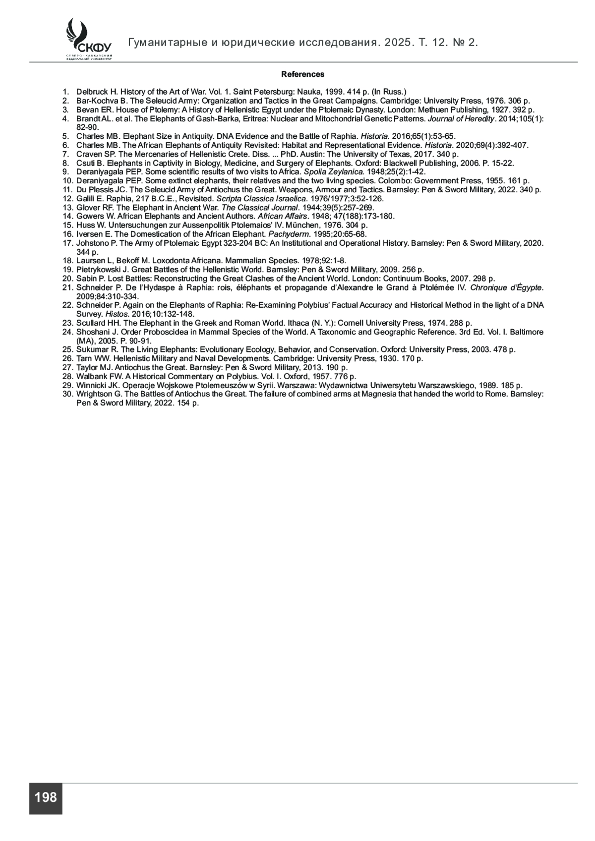 22. Schneider P. Again on the Elephants of Raphia: Re-Examining Polybius’ Factual Accuracy and Historical Method in the light of a DNA Survey // Histos. 2016. No. 10. P. 132-148.