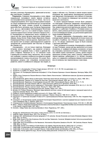 3. Арутюнян А. Ж. Ашхарацуйц (Армянская география) V-VII вв. Мовсеса Хоренаци и Анания Ширакаци. Белгород: Зебра, 2023. 184 с.