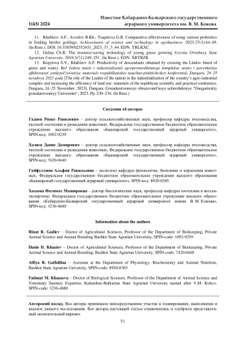 11. Хабиров А. Ф., Авзалов Р. Х., Цапалова Г. Р. Сравнительная эффективность использования различных пробиотиков в кормлении гусят-бройлеров // Достижения науки и техники АПК. 2023. Т. 37. № 3. С. 44-49. DOI: 10.53859/02352451_2023_37_3_44 EDN: YRLKXC