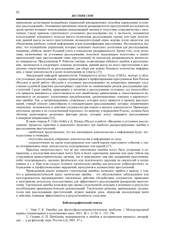 4. Егорова Н. А., Соловьева Н. А. Тактический риск, тактические и следственные ошибки при расследовании преступлений: криминалистические и уголовно-правовые аспекты // Вестник Волгоградской академии МВД России. 2012. № 2 (21). С. 99-104. EDN: PIUFWT