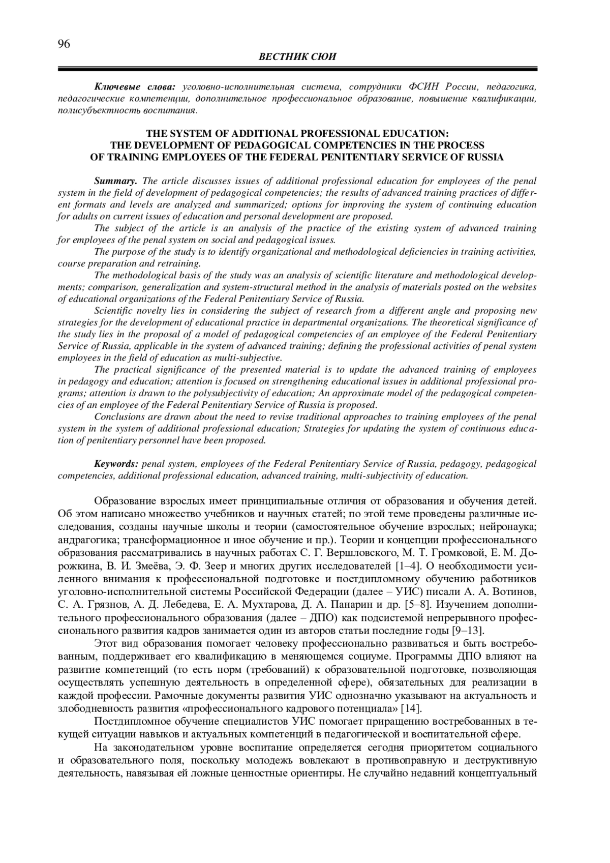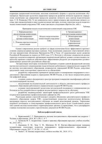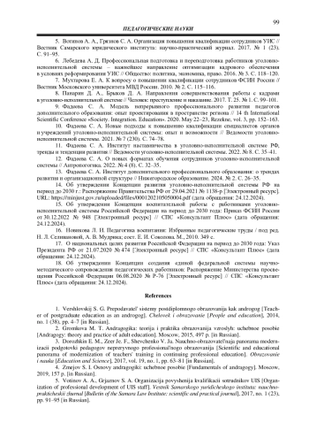 10. Фадеева С. А. Новые подходы к повышению квалификации специалистов органов и учреждений уголовно-исполнительной системы: опыт и возможности // Ведомости уголовно-исполнительной системы. 2021. № 7 (230). С. 74-78. EDN: ETHXQG