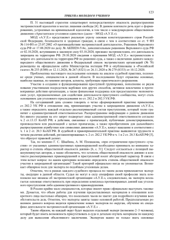 Актуальность исследования механизмов борьбы с экстремистскими организациями не вызывает сомнения. Для успешной профилактики борьбы с подобными организациями представляется необходимым анализ практики применения соответствующих статей Уголовного кодекса РФ. Международное общественное движение «А. У. Е.» относительно недавно было признано Верховным судом экстремистской организацией, деятельность которой запрещена на территории России.