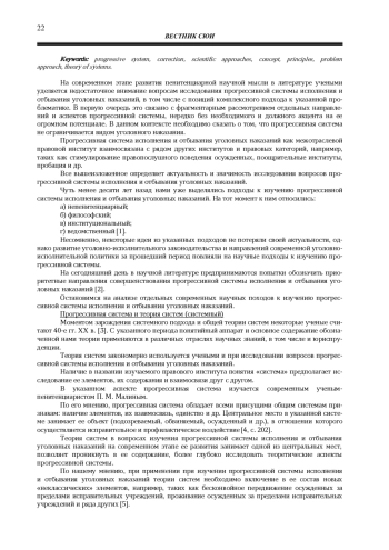 1. Горбань Д. В. Современные подходы к изучению прогрессивной системы исполнения и отбывания наказаний // Российский журнал правовых исследований. 2016. Т. 3. № 2 (7). С. 207-215. EDN: XEANEZ
