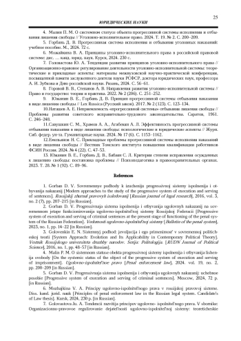 9. Южанин В. Е., Горбань Д. В. Принцип прогрессивной системы отбывания наказания в виде лишения свободы // Lex Russica (Русский закон). 2017. № 2 (123). С. 123-134. EDN: YJJUTD