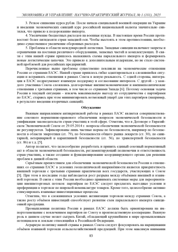 В последние годы уровень напряжённости в отношениях между Россией и западными странами значительно вырос. Фактически речь идёт о гибридном противостоянии между нашей страной и блоком НАТО, которое включает, помимо военных действий на территории Украины, меры воздействия в сфере экономики и политики, а также в информационном пространстве. Одним из наиболее важных аспектов достижения успехов в этом противостоянии является обеспечение экономической безопасности нашей страны. Как показывает история, экономическая мощь лежит в основе любого военного успеха. В целях обеспечения безопасности в этой сфере и наращивания экономического потенциала Россия в рамках различных интеграционных объединений активно сотрудничает со странами, не входящими в западную ось. В первую очередь это касается стран Евразийского экономического союза (ЕАЭС).