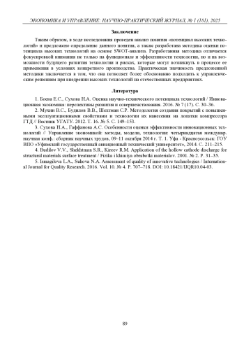 1. Боева Е.С., Сухова Н.А. Оценка научно-технического потенциала технологий / Инновационная экономика: перспективы развития и совершенствования. 2016. № 7 (17). С. 30-36. EDN: XBOKOH