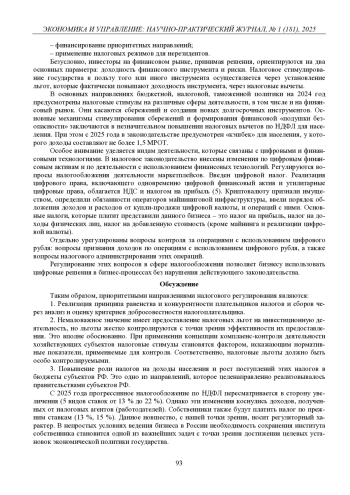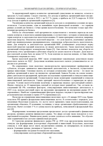 В статье рассмотрены вопросы налогового регулирования экономических процессов, основанных на исследовании налоговых стимулов и ограничений. Особое внимание уделено инвестиционной деятельности, сфере инновационных финансовых технологий. Концептуальная основа анализа – ориентированность процессов налогового регулирования на формирование экономики предложения