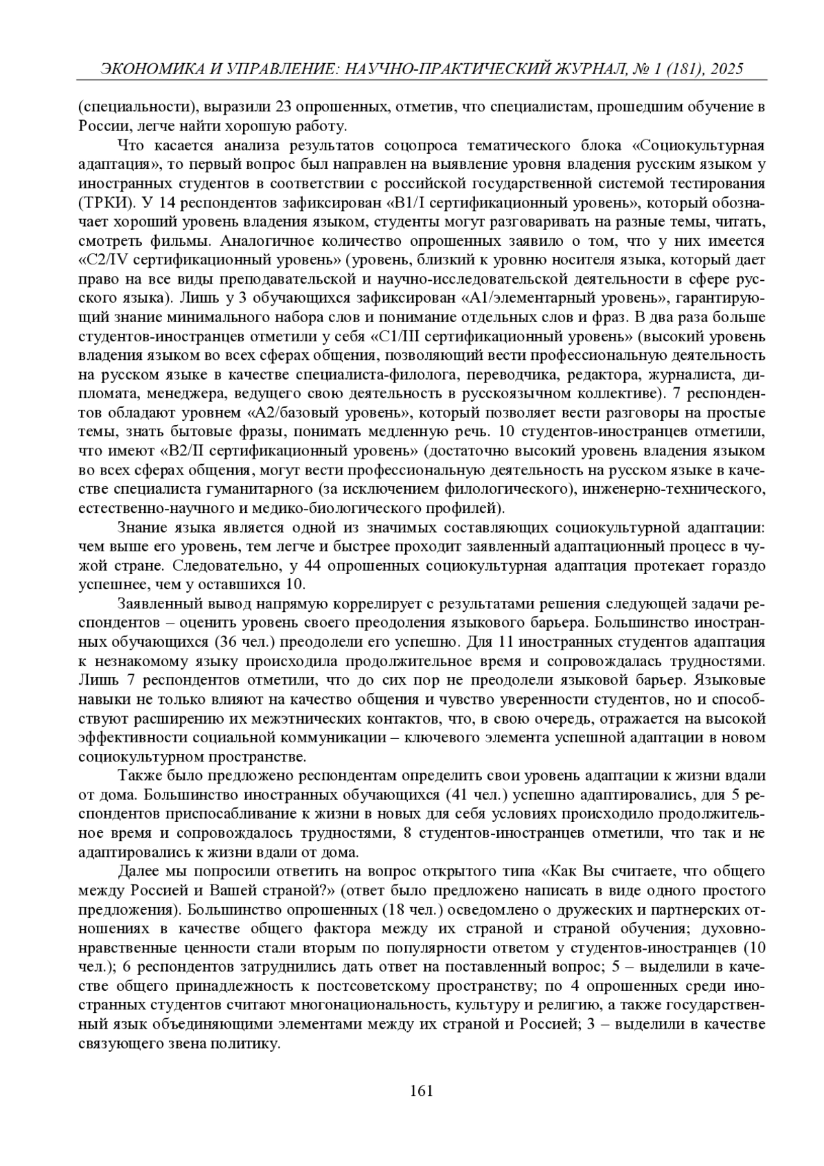 Сегодня характерной чертой развития университетов мирового уровня является рост количества иностранных студентов, сопровождаемый, в том числе, совершенствованием программы развития академической мобильности. В Российской Федерации сформулирована одна из целей развития, которая была утверждена Указом Президента РФ – увеличение к 2030 году численности иностранных студентов, обучающихся по образовательным программам высшего образования в российских образовательных организациях высшего образования и научных организациях, не менее чем до 500 тыс. человек [3]. В этой связи полезно обратиться к опыту российских научно-образовательных структур мирового уровня, осуществляющих процесс обучения иностранных студентов, руководствующихся конвенцией о признании квалификаций [2] и изучением исследовательских наработок в области успешной адаптации молодых людей к новой действительности