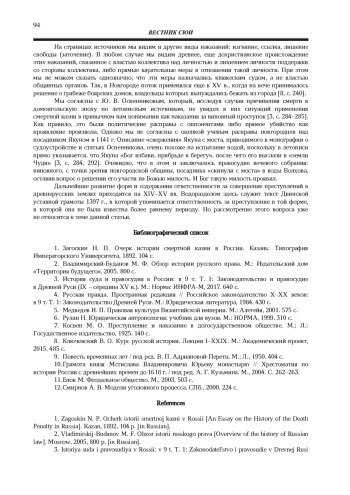 1. Загоскин Н. П. Очерк истории смертной казни в России. Казань: Типография Императорского Университета, 1892. 104 с.