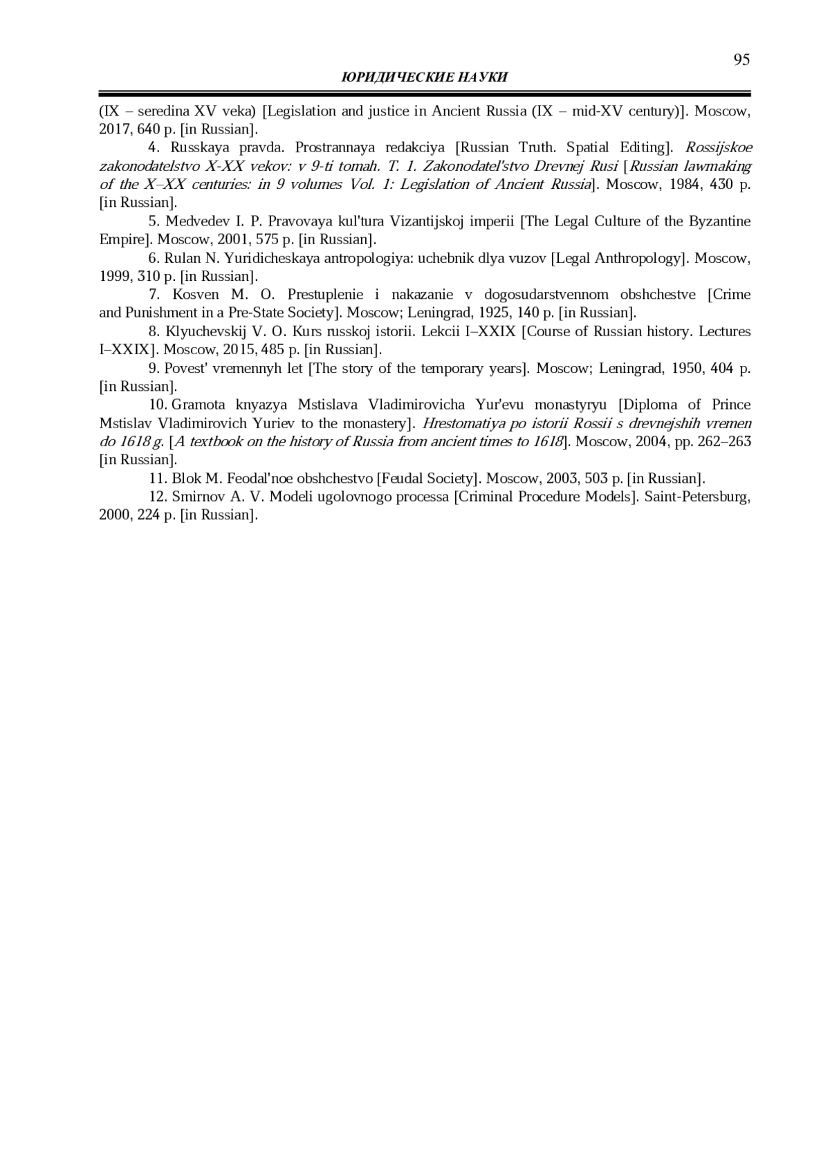 3. История суда и правосудия в России: в 9 т. Т. 1: Законодательство и правосудие в Древней Руси (IX - середина XV в.). М.: Норма: ИНФРА-М, 2017. 640 с.