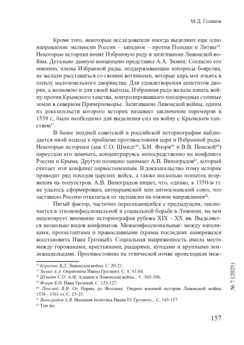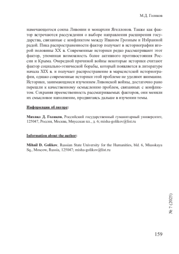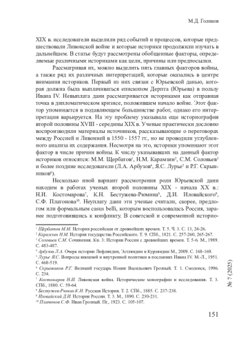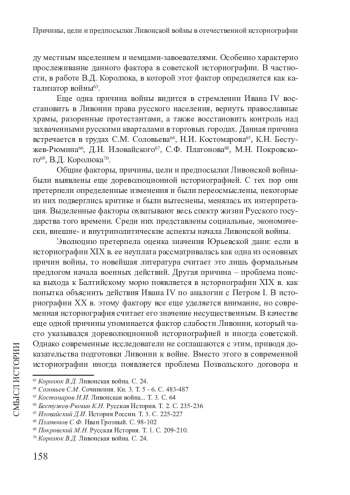 В последнюю четверть века в исторической науке вновь возник интерес к Ливонской войне – конфликту второй половины XVI в. между Россией и рядом соседних стран за обладание Ливонией. Отечественная историография пополнилась рядом работ, использующих новые методы исследований и более широкую источниковую базу. Современные российские историки пытаются переосмыслить наследие своих предшественников. Однако до сих пор не было проведено комплексного анализа процесса изучения Ливонской войны в отечественной историографии.