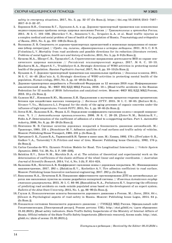 6. Волошина Л. В. Смертность от дорожно-транспортных происшествий и возможные направления её снижения (обзор литературы) // Пробл. соц. гигиены, здравоохранения и истории медицины. 2011. № 5. С. 6-9.