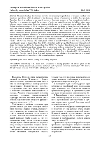 Статья: ОЦЕНКА ХЛЕБОПЕКАРНЫХ СВОЙСТВ ЗЕРНА ТРИТИКАЛЕ СОРТА ВАЛЕНТИН-90 (2024)
