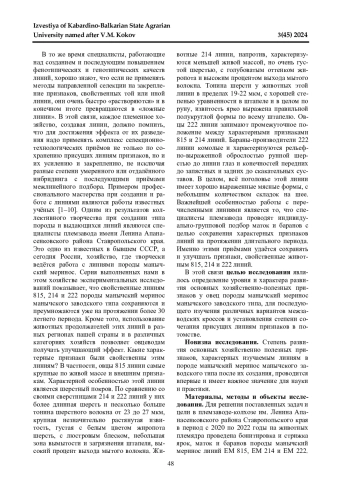 5. Селькин И. И., Абонеев В. В., Ржепаковский В. В. Оплата корма приростом живой массы и шерсти у ярок от внутри и межлинейного подбора: сб. науч. тр. / ВНИИОК. Вып. 42. Ставрополь, 1997. С. 19-24.