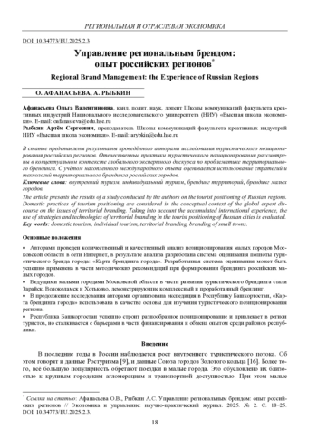 В статье представлены результаты проведённого авторами исследования туристического позиционирования российских регионов. Отечественные практики туристического позиционирования рассмотрены в концептуальном контексте глобального экспертного дискурса по проблематике территориального брендинга. С учётом накопленного международного опыта оценивается использование стратегий и технологий территориального брендинга российских городов